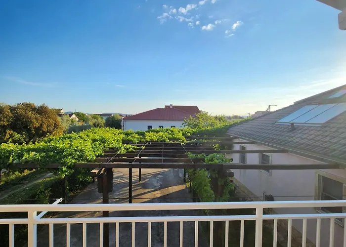 Studio Apartmani Sukosan Sukošan设有大厨房和配阳台,咖啡机/煮茶机 和电视的客房. 住处离Sv. Martin不远,两点距离为2.5公里.